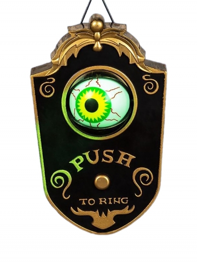 Декоративный дверной звонок Spy Eye – оригинальное и эффектное дополнение к вашему дому. Звонок издает зловещий звук, который идеально подходит для создания атмосферных условий, например, на Хэллоуин. На лицевой стороне находится кнопка, а двигающийся глаз добавляет дополнительный элемент неожиданности и страха. Для работы требуется 3 батарейки AAA (не входят в комплект). Изготовлен из прочного ПВХ и оснащен электронным компонентом для стабильной работы. Удобный крючок позволяет легко установить звонок на дверь. Размер упаковки: 18 * 11,5 * 6,5 см, вес нетто: 281 г.